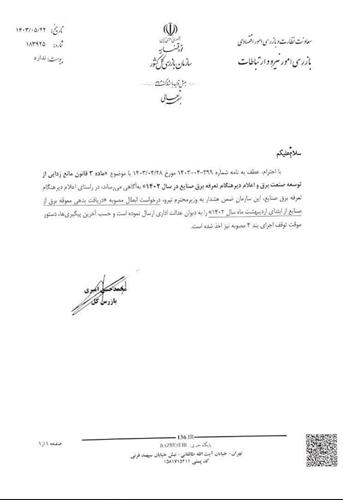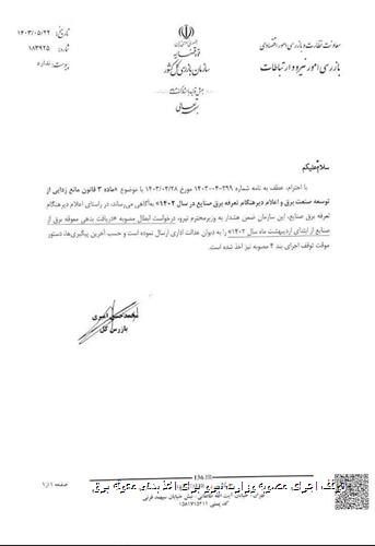 در ابلاغیه این سازمان که به شماره و تاریخ مشخص به وزارت نیرو ارسال شده است، به موارد مربوط به ماده ۳ قانون مانعزدایی از توسعه صنعت برق اشاره شده و تأکید گردیده است که تأخیر در اعلام تعرفههای برق صنایع در سال ۱۴۰۲ مشکلات زیادی برای تولیدکنندگان به وجود آورده است. به ویژه در ماههای ابتدایی سال، که به دلیل ناترازی برق، وزارت نیرو اقدام به تنظیم و ابلاغ تعرفهها کرده و تعرفههای جدید برق با افزایش قیمتها و جریمههای سنگین همراه بود. همچنین در این دوره، صنایع با مشکل جیرهبندی برق مواجه شدند که بر روند تولید و تحویل محصولات به بازار تاثیر منفی گذاشت.