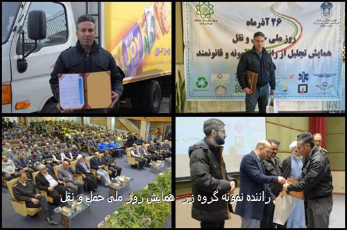 بنابرگزارش روابط عمومی گروه زر، در مراسم روز ملی حمل و نقل که صبح روز دوشنبه ۲۶ آذر با حضور سردار موسوی پور فرمانده راهور تهران بزرگ و برگزیدگان از واحدهای حمل و نقل سازمانها و شرکتهای مختلف همچون انجمن ملی صنعت پخش ایران، شرکت زرنگار پخش گروه زر، آتش نشانی، تاکسیهای اینترنتی، شرکت حمل و نقل خلیج فارس، شرکت واحد تهران، سازمان اورژانس و برخی مجموعه های دیگر در مرکز راهور تهران برگزار شد، از *رضا آدینه*، یکی از رانندگان قانونمند و نمونه *گروه زر* تقدیر به عمل آمد.