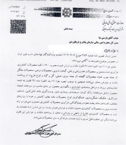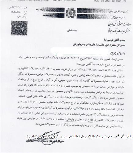 با استناد به مواد قانونی، محصولات زراعی و باغی خام، گیاهان دارویی، محصولات مرتعی و جنگلی از پرداخت مالیات بر ارزش افزوده معاف هستند. این موضوع فرصتهای اقتصادی و شرایط رقابتی جدیدی برای فعالان کشاورزی ایجاد میکند. این اطلاعیه به مدیر کل امور مالی سازمان بنادر و دریانوردی ارسال شده و تأکید شده که اجرای دقیق قوانین مالیاتی و نظارت بر حفظ انصاف در بخش واردات و صادرات این محصولات ضروری است.