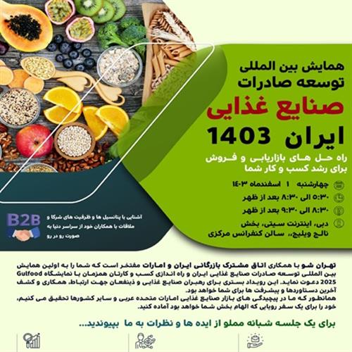 این همایش با تمرکز بر بازارهای صادراتی، جلسات B2B، آشنایی شرکتها با خریداران جدید، در تاریخ اول اسفند ۱۴۰۳ در دبی برگزار خواهد شد.