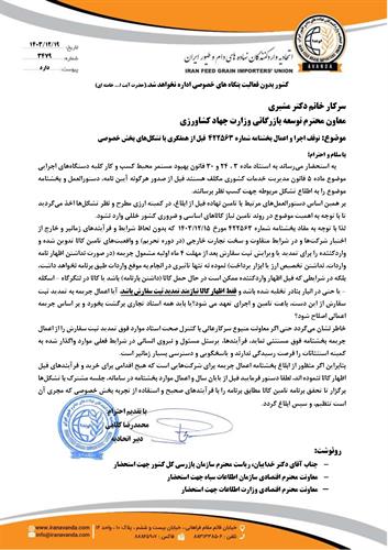 در شرایطی که تأخیر در پرداخت ارز واردات نهادههای دام و طیور به هفت ماه رسیده است، وزارت جهاد کشاورزی در اقدامی پیشگیرانه، ابلاغیهای صادر کرده که بر اساس آن، قیمت کالا در صورت تمدید ثبت سفارش، دو درصد کاهش مییابد و پس از دو ماه، این کاهش به پنج درصد میرسد. همچنین، ارائه قبض انبار تنها تا ۲۰ روز پس از تاریخ قبض پذیرفته میشود و پس از آن، تمدید امکانپذیر نخواهد بود.