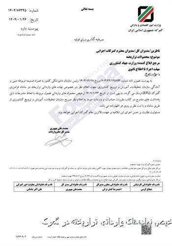 الزام ثبت نظر سازمان تحقیقات کشاورزی در سامانه EPL
