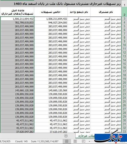 بانک ملت طبق گزارش رسمی منتشر شده از سوی بانک مرکزی، طی سال ۱۴۰۳ بیش از ۲۳ هزار میلیارد تومان تسهیلات به مشتریان خاص خود در قالب وامهای ریالی و ارزی پرداخت کرده است؛ اما بیش از ۱۷هزار و ۱۰۰ میلیارد تومان از این تسهیلات، در وضعیت «بدهی غیرجاری» قرار دارد. این بدان معناست که یا موعد پرداخت گذشته و یا بازپرداخت به کلی متوقف شده است.