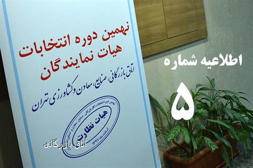 در اطلاعیه شماره 5 هیات نظارت بر انتخابات اتاق تهران آمده است: