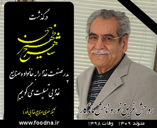 شاهرخ ظهیری را پدر صنعت غذا می شناختند که در تاریخ 22 فروردین 1398 و در سن 89 سالگی در تهران چشم از دنیا فروبست و نامش را برای صنعت و اقتصاد ایران ماندگار کرد، پیکر او را در بهشت زهرا (در آرامگاه خانوادگی روبروی قطعه هنرمندان) به خاک سپردند.