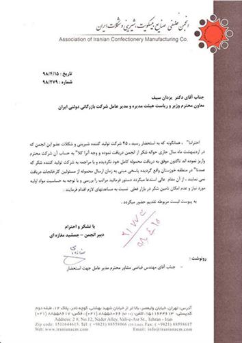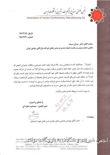 انجمن شیرینی و شکلات در نامهای به مدیرعامل بازرگانی دولتی: