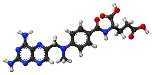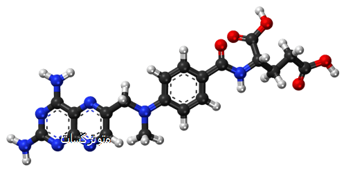 متوترکسات یک مهار کننده رقابتی آنزیم دی هیدروفولات ردوکتاز است که سنتز DNA را مختل می کند. به دلیل نفوذپذیری ضعیف سد خونی-مغزی، دوز بالای متوترکسات برای نفوذ کافی مایعات مغزی و پارانشیم اجرا می شود.